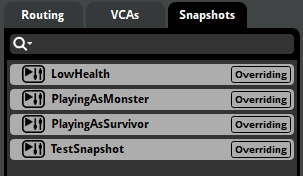 Above: the various mixer snapshots for different player statuses, in addition to a test snapshot.